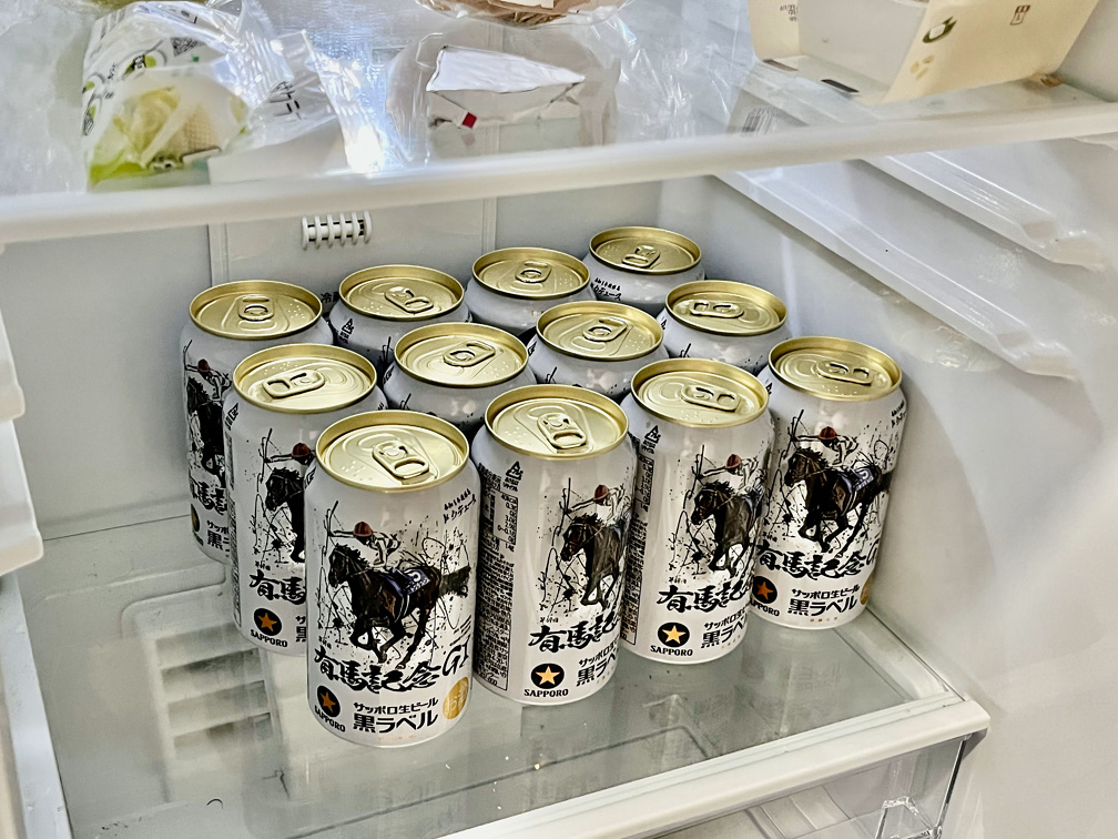 現地観戦後、家で3冠達成の瞬間を何度も見ながら飲むのを楽しみに近所のコンビニから買い占めていた有馬記念パッケージのビール…